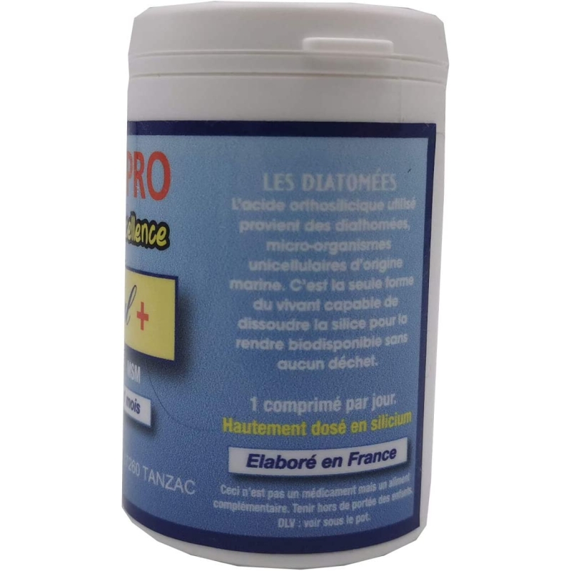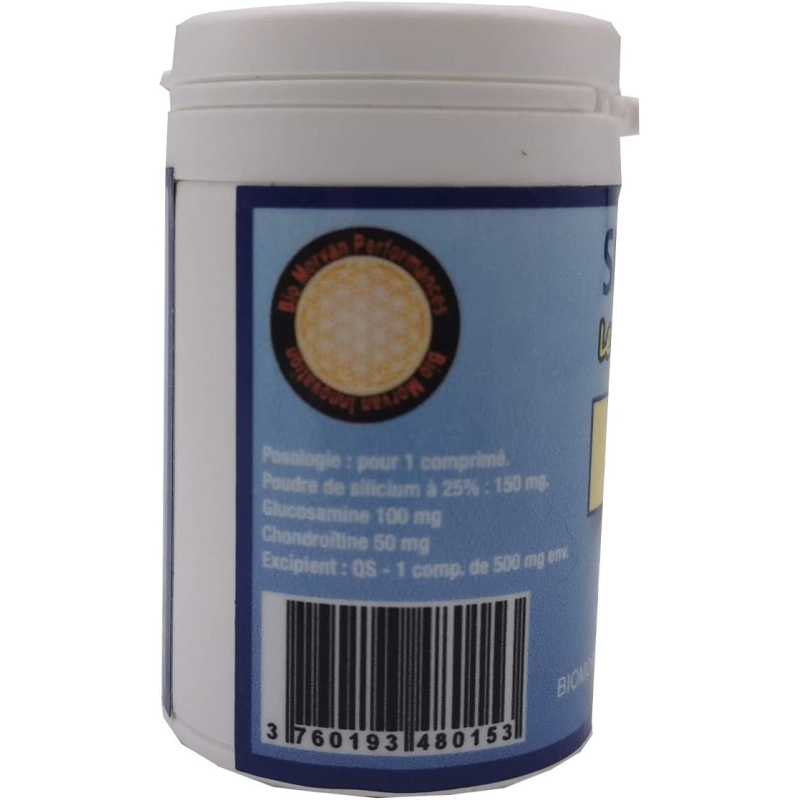 CompositionIngrédients pour un comprimé :Poudre de silicium à 25% : 150 mg ; Glucosamine sulfate : 100 mg ; Chondroïtine sulfate : 50 mg ; Methylsulfonate de Methane : 100 mg ; Excipient : QS – 1 comprimés de 500mg env