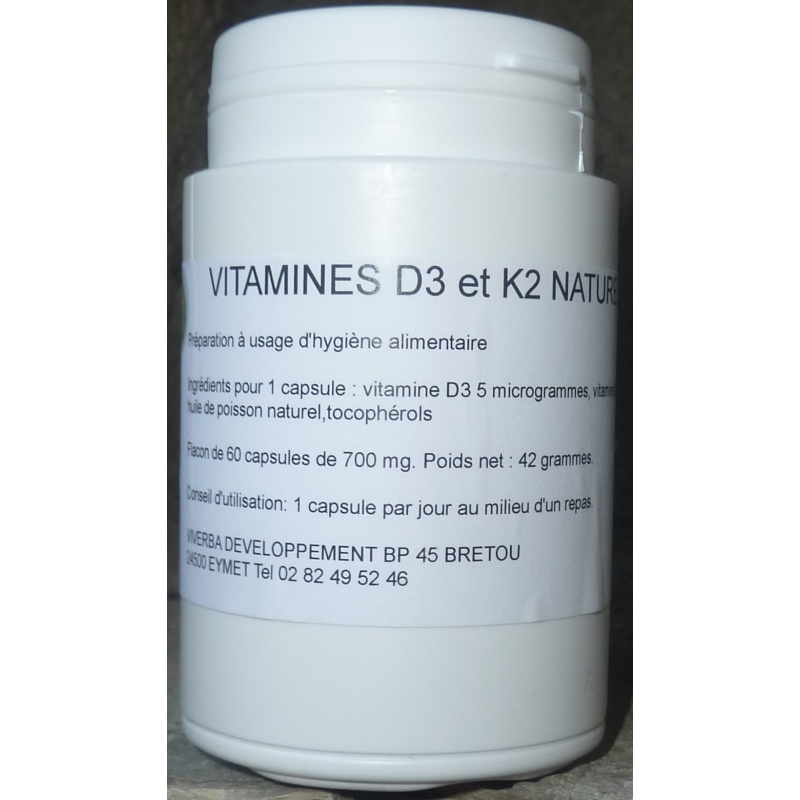 VITAMINES D3 et K2 NATURELLES - flacon 60 capsules