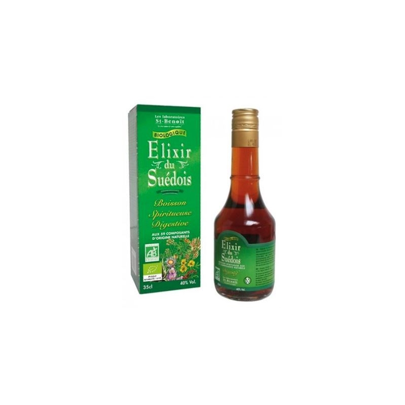 PrésentationL’Elixir du Suédois est reconnu et recherché depuis toujours pour ses propriétés digestives.Certifié d’origine biologique, il est le reflet de la tradition séculaire transcrite par le Dr Samst au 18ème siècle.Les 59 composants biologiques de cet élixir sont, pour leur majorité, celles utilisées dans la recette originale du véritable Elixir du Suédois du Laboratoire St Benoit.
