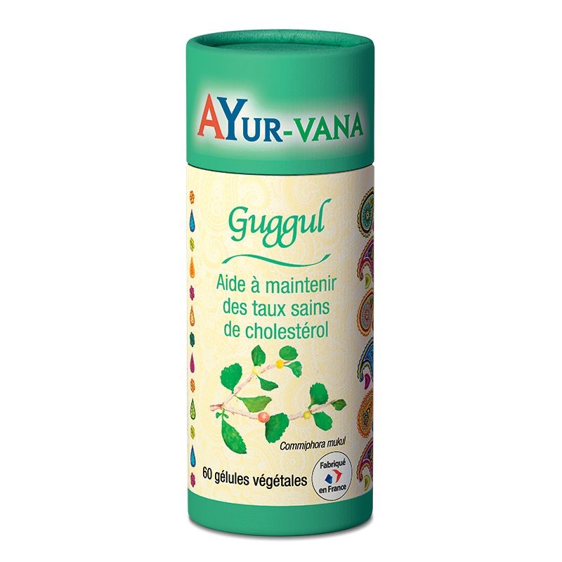 PrésentationEfficace, le Guggul dit "myrrhe des Indes" est une solution naturelle et sans statines pour cibler le cholestérol. Dans les textes originaux de l’Ayurvéda, qui datent de plus de 4500 ans, on le recommandait déjà pour aider à nettoyer les intestins, le sang et les tissus. On sait aujourd'hui que cette plante permet aussi de maintenir des taux normaux de lipides sériques dans votre sang.Le Guggul est une résine récoltée sur le Guggulu (Commiphora mukul), un arbre qui pousse à l’état sauvage dans les forêts du sud de l’Inde. Depuis ces dernières années il rencontre un franc succès en occident compte-tenu de son efficacité facile à vérifier. En effet, il suffit à la suite d’une prise de sang qui indique un cholestérol trop élevé, de pratiquer une cure de Guggul durant un mois, puis de procéder à une nouvelle prise de sang, le résultat parle de lui-même. De plus, contrairement aux médicaments ou même à d’autres produits naturels, le Guggul ne contient pas de statine.Nous avons donc sélectionné cette racine pour sa qualité et ses vertus reconnues par l’Ayurvéda depuis des millénaires.Notre Guggul est titré à 2,5% de Guggulstérones, sa substance active.