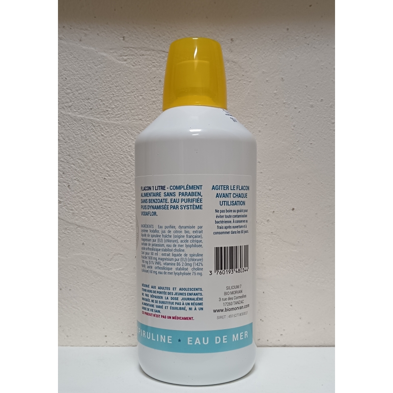 | Composition | Ingrédients : Magnésium pur (chlorure), acide orthosilicique stabilisé choline, extrait liquide de spiruline fraîche, eau de mer, jus de citron bio |