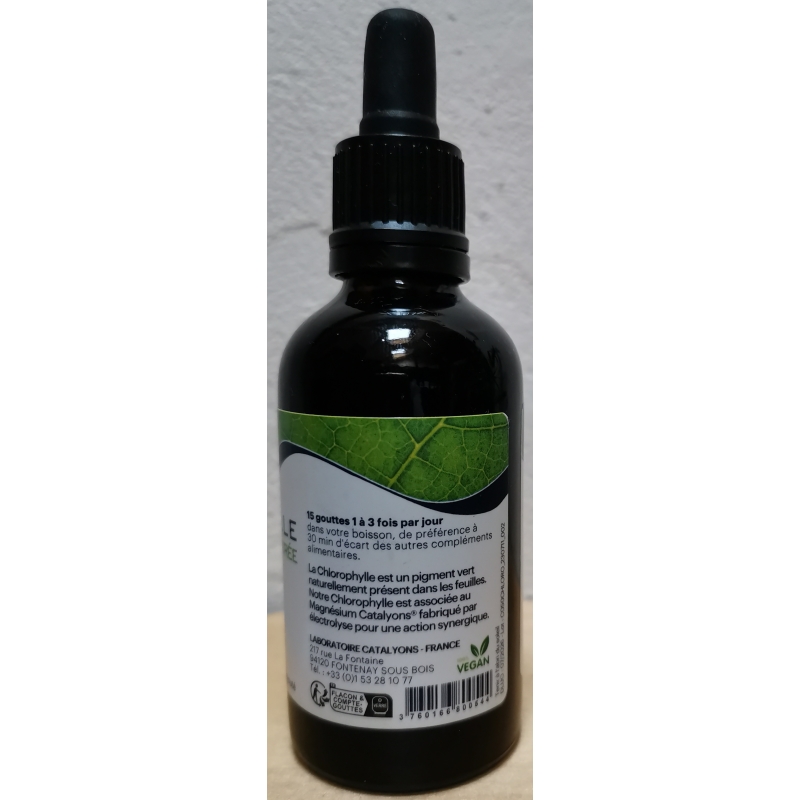 | Informations diverses | Tableau d'équivalence de la chlorophylle concentrée (gouttes et mg) : - 15 gouttes équivalent à 110 mg de chlorophylle ; - 30 gouttes équivalent à 220 mg de chlorophylle ; - 45 gouttes équivalent à 330 mg de chlorophylle. |