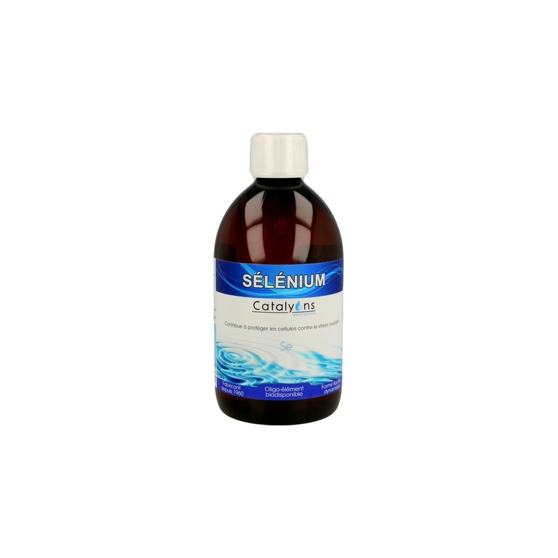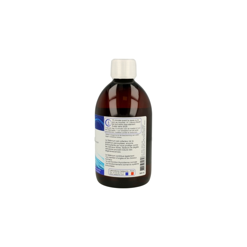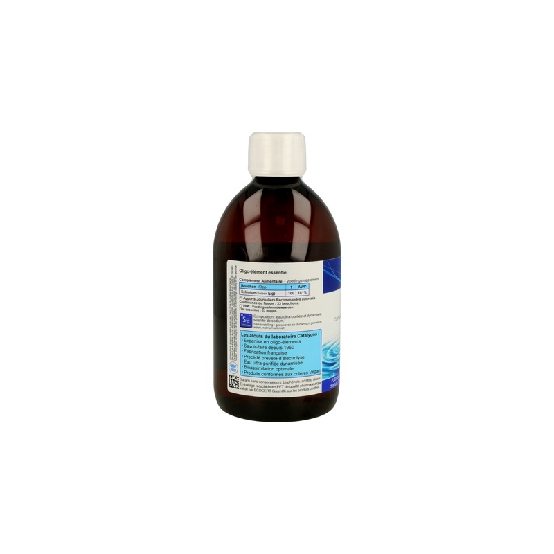 Composition | Ingrédients pour 1 bouchon (15 ml)- Sélénium 50 µg- Eau purifiée et dynamisée, sélénite de sodium. Les Catalyons ne contiennent ni alcool, ni lactose, ni gluten, ni colorants de synthèse, ni parabens, ni benzoate, ni sulfites. |