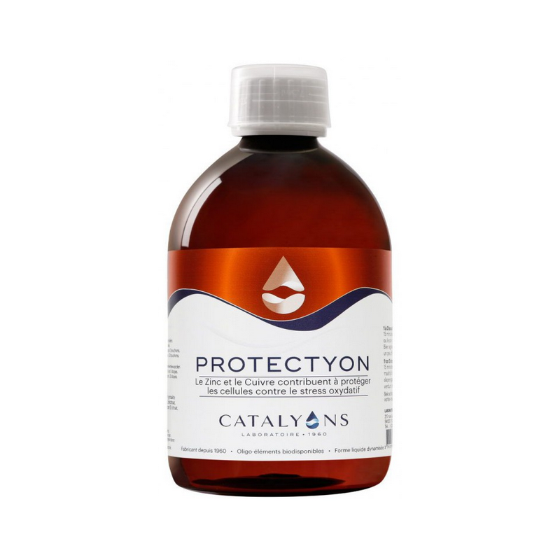 PROTECTYON contribue au bien-être de l'organisme en protégeant les cellules contre le stress oxydatif. Le cuivre et le Zinc contribuent au fonctionnement normal du système immunitaire