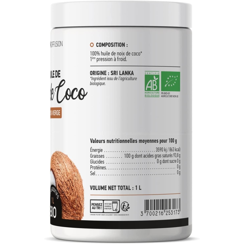 Huile de Noix de Coco Bio 100 % vierge - 1 litre