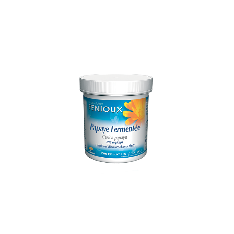 Conseils d'utilisation3 à 6 gélules par jour réparties en 2 prises avec un grand verre d'eau, 10 minutes avant les repas.Il est conseillé d'utiliser la papaye fermentée pendant une période de 2 mois.