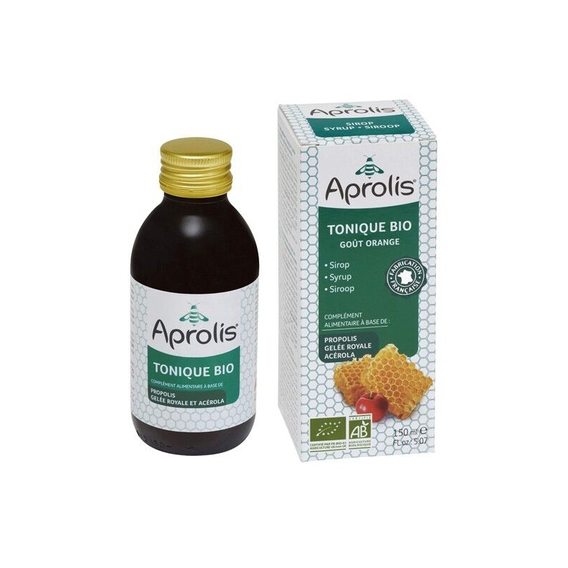 Le Sirop tonique bio Aprolis est un complément alimentaire sous forme de sirop à base de produits de la ruche et vitamine C pour conserver forme et vitalité toute l'année. Stimule les défenses immunitaires en hiver ou renforce l'organisme lorsqu'il est affaibli. Ce sirop convient aux adultes et aux enfants dès 6 ans.